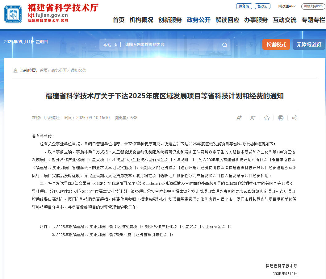近日,福建省科學技術(shù)廳發(fā)布《福建省科學技術(shù)廳關(guān)于下達2025年度區(qū)域發(fā)展項目等省科技計劃和經(jīng)費的通知》,水投設計公...